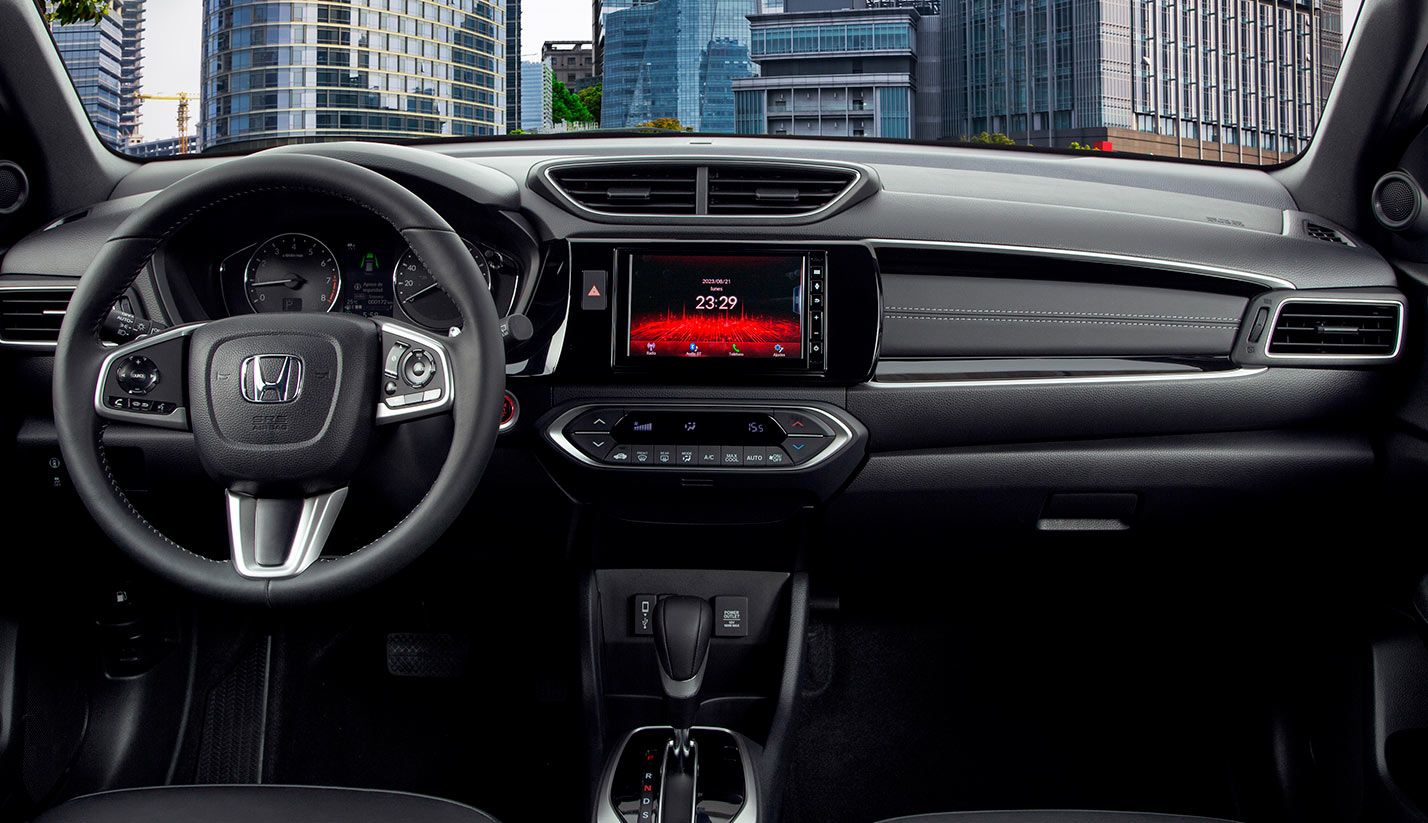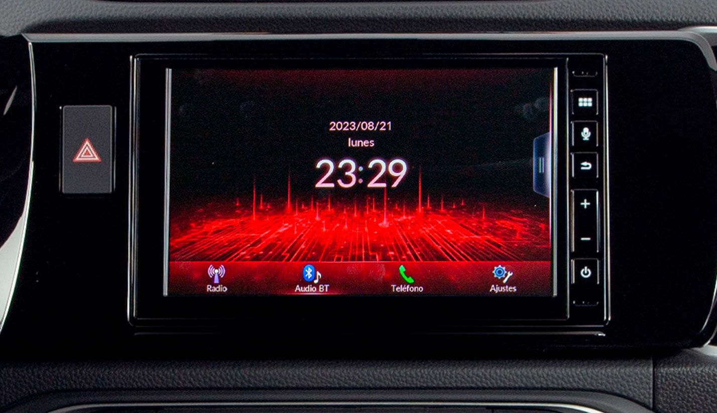 Su pantalla táctil es de 7” y cuenta con sistema display audio con 6 bocinas, compatible con Apple CarPlay® y Android Auto™ alámbrico.